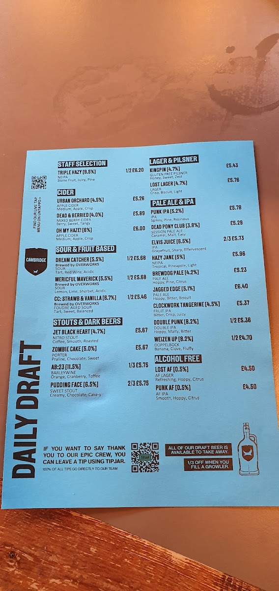 Notably, BrewDog Cambridge also caters to non-alcoholic preferences, featuring drinks like Lost Af and Punk Af for a guilt-free indulgence. The atmosphere is lively and welcoming, making it the perfect spot for friends or family gatherings. With dedicated service from staff members like Finn and Lou, patrons are guaranteed an enjoyable dining experience.